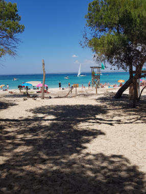 und die Menschen dicht an dicht liegen. Die Playa Es Trenc ist