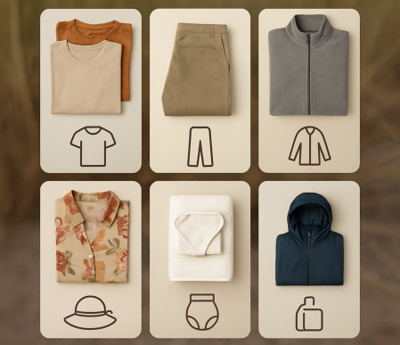 • 1–2 Hosen (z. B. eine Jeans, eine