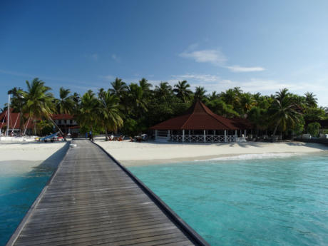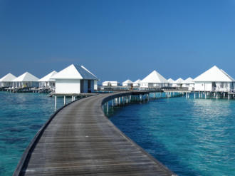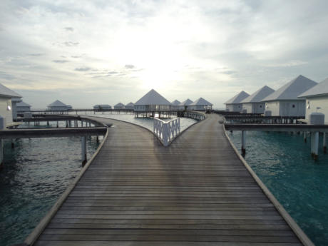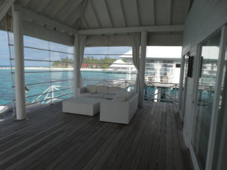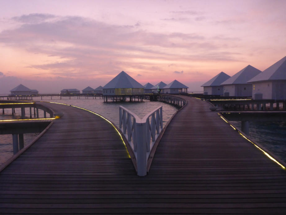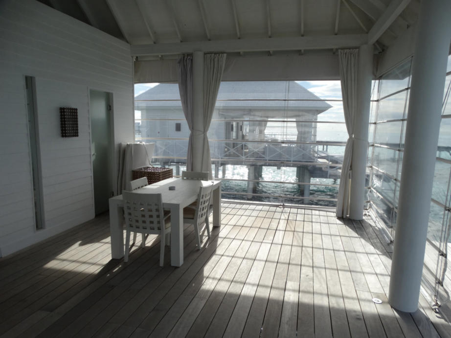 sich schnell abduschen kann.Das Resort bietet All-Inklusive Verpflegung. Als Wasservillen-Gast benutzt man